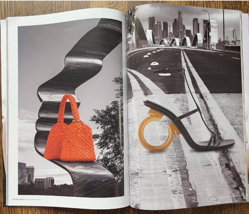 UNA Magazine, Issue: Rewriting (Spring 2023) Mar 15 Written By Ellen Friedlander “Shoes and Bags” Travel Log, 8 page Spread. Photographs by Ellen Friedlander with photoshopped products by UNA magazine creative team. Ellen Friedlander